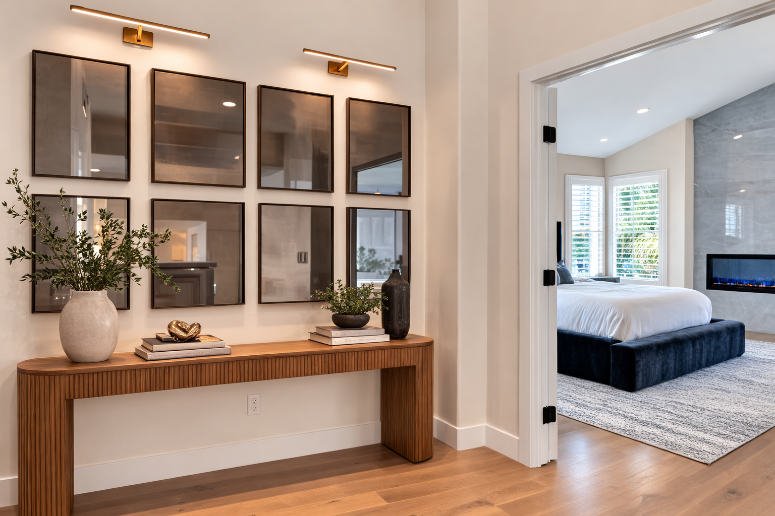 A refined interior refresh blending modern contrast, layered textures, and elevated comfort.